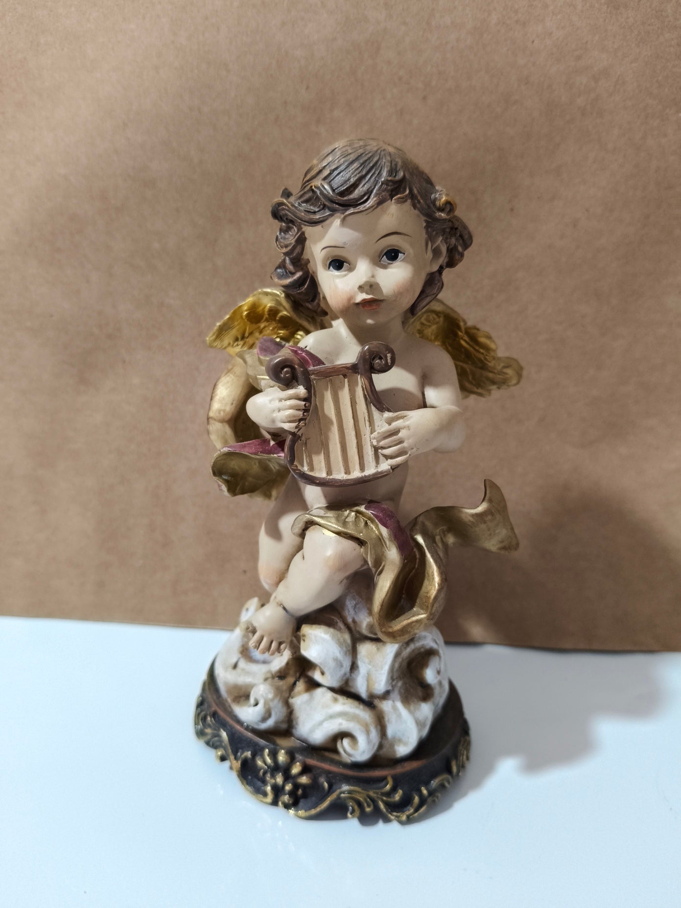 Precioso ángel con arpa de cerámica
