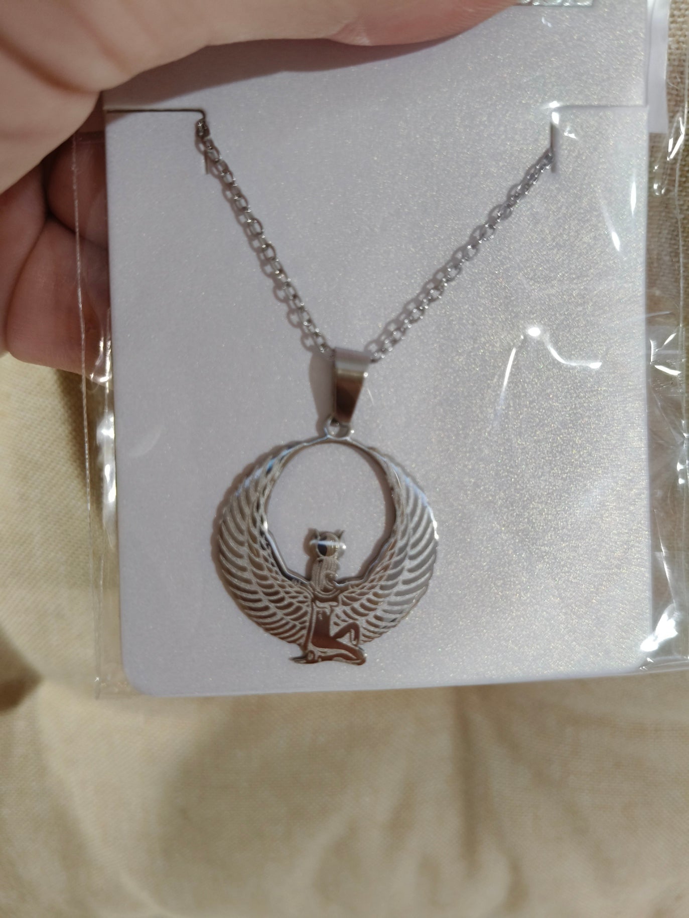 El colgante de Isis, un antiguo talismán egipcio, se asocia con la protección maternal y divina, la magia, la fertilidad y la vida eterna. También se cree que el colgante atrae la riqueza espiritual y el amor eterno, fomenta la conexión espiritual y puede servir para invocar la protección en el hogar. El uso de elementos como el Ankh (símbolo de vida eterna) y el Ojo de Horus (protección y salud) refuerza sus propiedades beneficiosas.