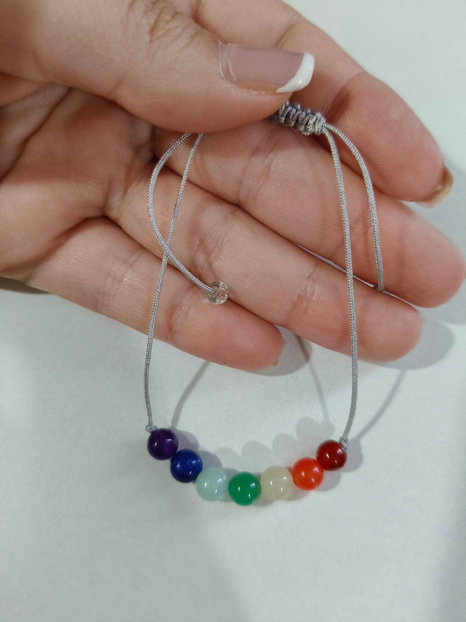 La pulsera de los chacras giran en torno al equilibrio energético, la sanación emocional y espiritual, la conexión con uno mismo y el universo, y la protección contra energías negativas. La pulsera utiliza piedras naturales de diferentes colores, cada una asociada a un chacra, para armonizar los centros energéticos del cuerpo, promoviendo la claridad mental, la confianza, la creatividad y el bienestar general.