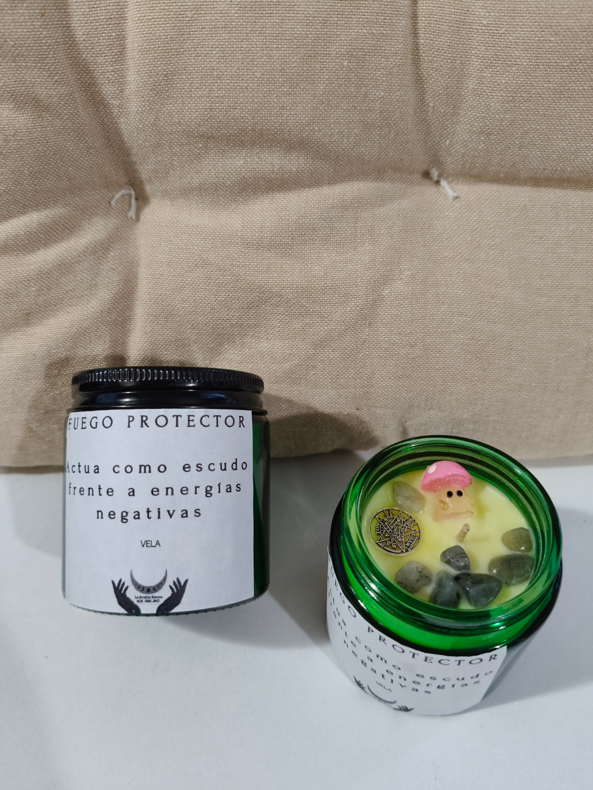 “Esta vela funciona como un foco de energía positiva: al encenderla, su luz y calor ayudan a disipar las energías negativas y a crear un ambiente de protección y tranquilidad a su alrededor limpiando también el lugar de cualquier carga negativa acumulada donde se encienda .”
